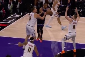 威少跳起传球砸到布劳恩脚背 约基奇&穆雷等四人齐齐摊手