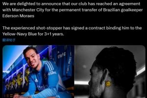 费内巴切晒埃德森官宣定妆照:欢迎加盟,我们已签下3+1合同