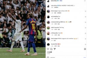 他也在赛后通过社媒晒出自己的振臂庆祝照并配文:“皇家马德里,无需多言!”